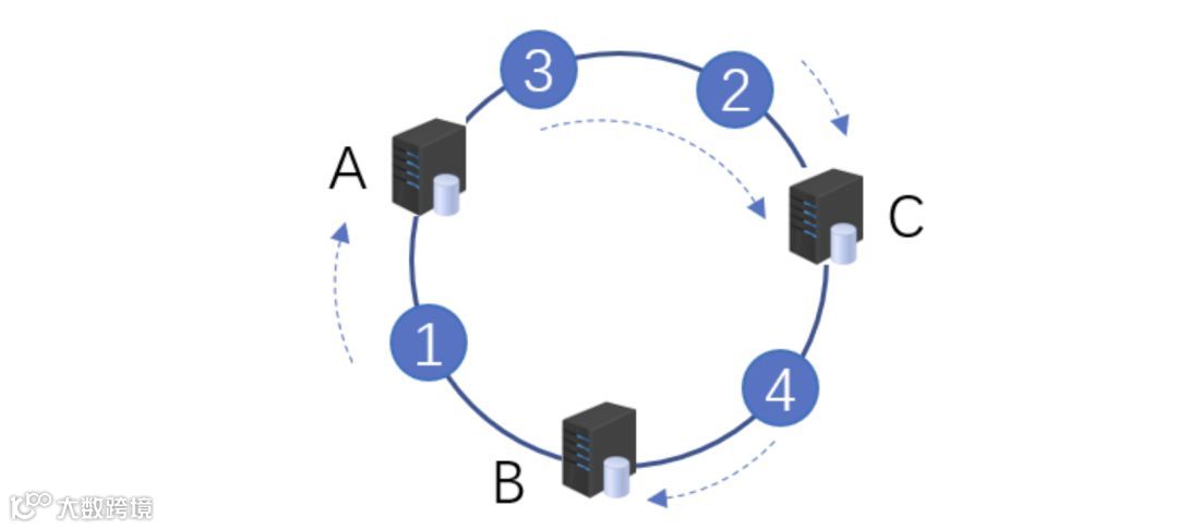 一致性hash的基本原理是将输入的值hash后,对结果的hash值进行2^32取模,这里和普通的hash取模算法不一样的点是在一致性hash算法里将取模的结果映射到一个环上。将缓存服务器与被缓存对象都映射到hash环上以后,从被缓存对象的位置出发,沿顺时针方向遇到的第一个服务器,就是当前对象将要缓存于的服务器,由于被缓存对象与服务器hash后的值是固定的,所以,在服务器不变的情况下,一个openid必定会被缓存到固定的服务器上,那么,当下次想要访问这个用户的数据时,只要再次使用相同的算法进行计算,即可算出这个用户的数据被缓存在哪个服务器上,直接去对应的服务器查找对应的数据即可。这里的逻辑其实和直接取模的是一样的。如下图所示: