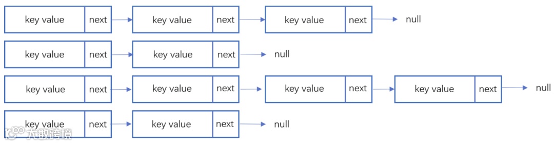 链表地址法是使用一个链表数组,来存储相应数据,当hash遇到冲突的时候依次添加到链表的后面进行处理。