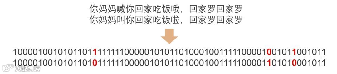 如下图所示,当两个文本只有一个字变化时,如果使用普通Hash则会导致两次的结果发生较大改变,而SimHash的局部敏感特性,会导致只有部分数据发生变化。