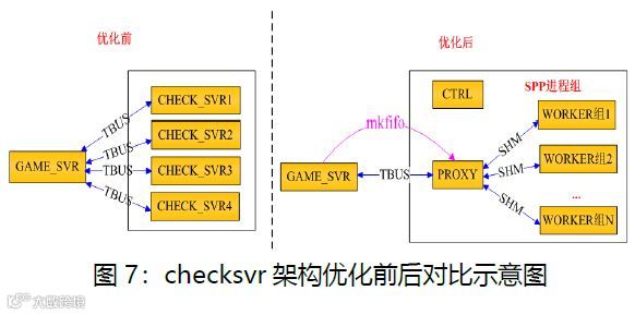 验so。图6 是优化前gamesvr 和checksvr 通信示意图。