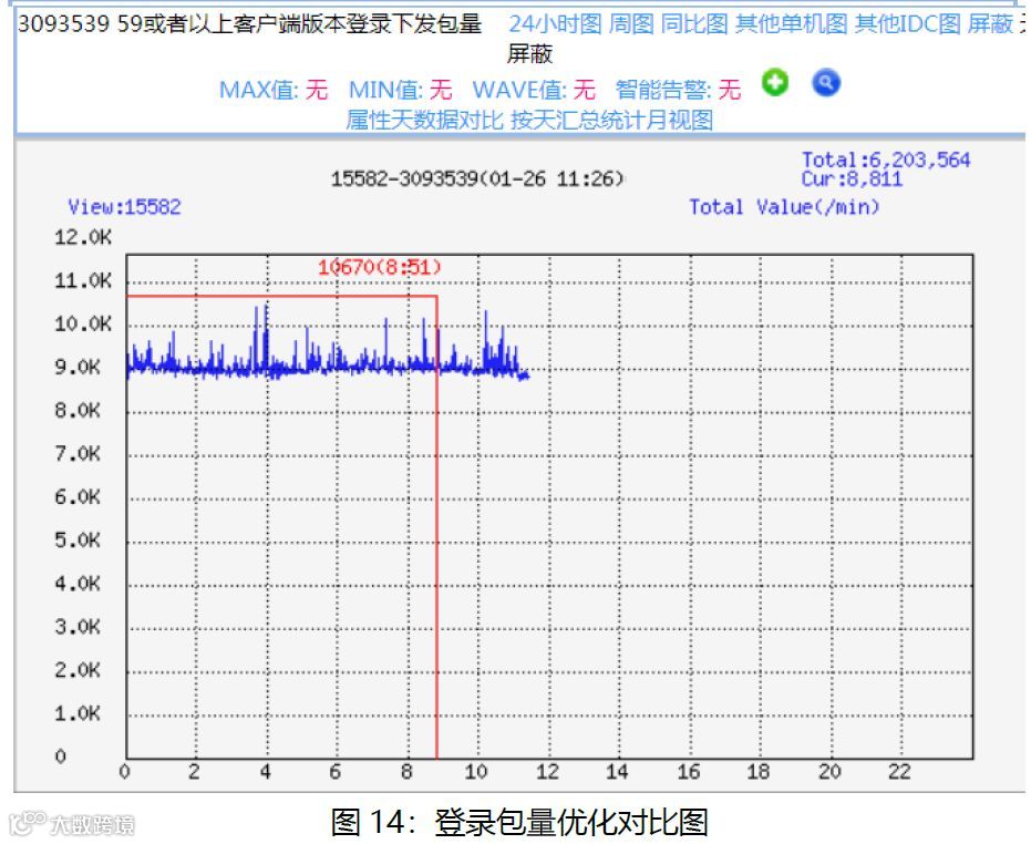 优化过后外网登录下发包量减少效果比较明显,如下图14 所示。在我们使用的