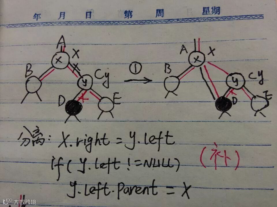 4)旋转操作注意指针的指向,每个都要考虑全了,parent、left、right缺一不可。