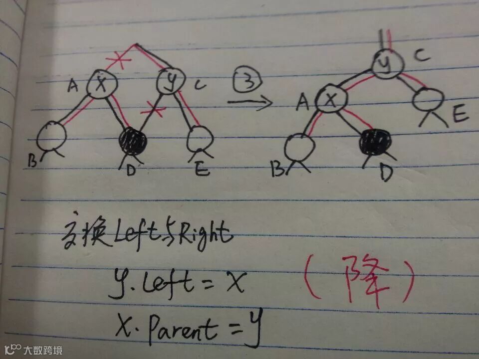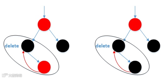 2)如果删除的是黑色结点,则不用想,第5条性质破坏了,其中:
