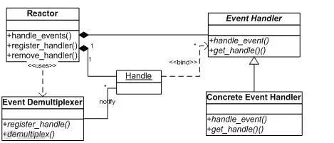 事件处理程序提供了一组接口,每个接口对应了一种类型的事件,供Reactor在相应的事件发生时调用,执行相应的事件处理。通常它会绑定一个有效的句柄。