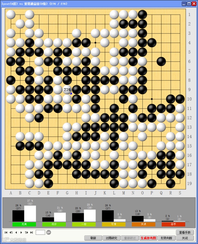 使用弈城AI工具进行全局落点分析后,发现双方虽均有失误,甚至白棋“完美”和“很好”的行棋均多于黑棋,但黑棋整体发挥更稳定,后半盘官子技术也更胜一筹。至此,执黑的韩方小棋手朴星峻为韩方队伍添下1分,中韩大比分改写为6:3。