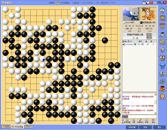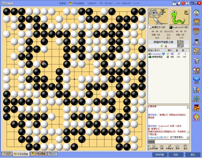 2、依据弈城分先黑贴6目半竞赛规则进行比赛。