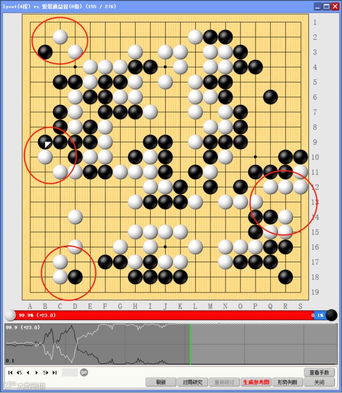 红圈的四处价值巨大的官子,均被白棋稳稳拿下,黑棋无力回天。
