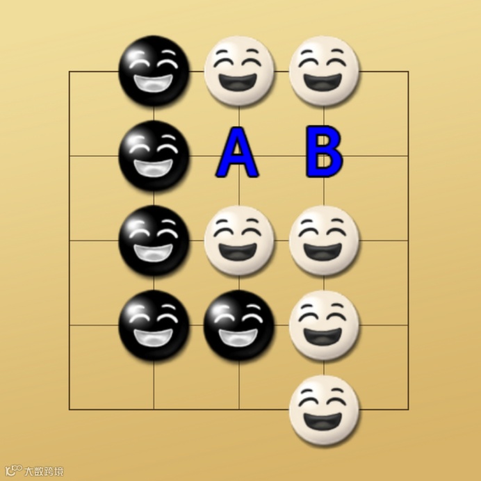黑棋落子在A点时,白棋若不在B点落子应对,则白棋全部被吃。