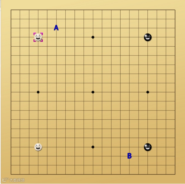布局阶段,黑棋于A点挂角,对于白棋而言并不一定需要守角,可以在B点落子挂角,那A点是不是先手呢?