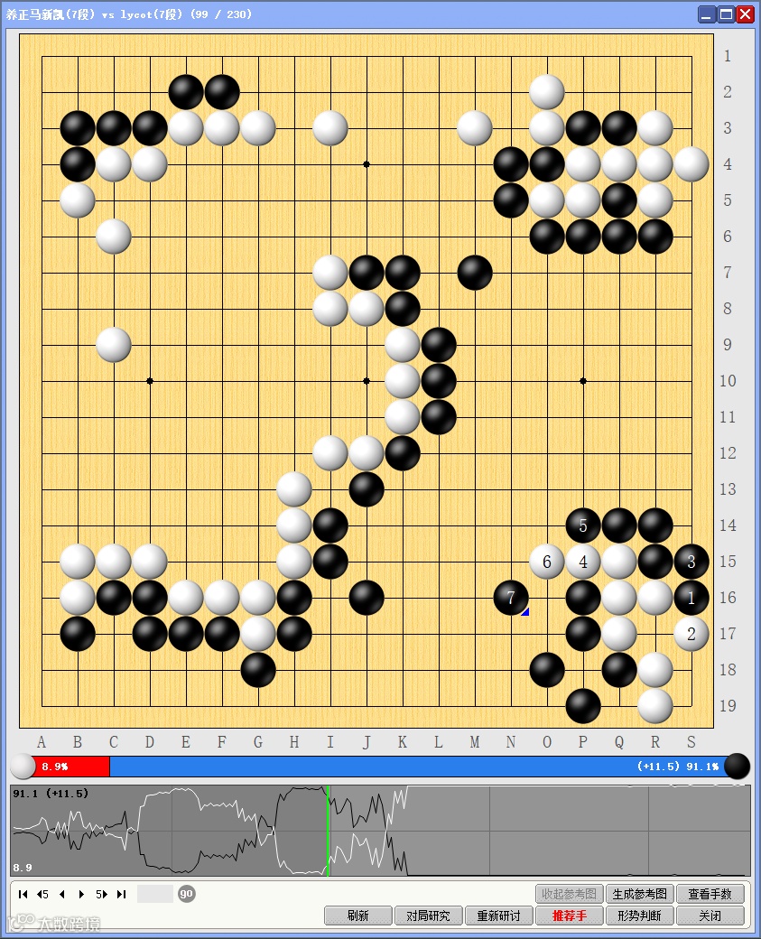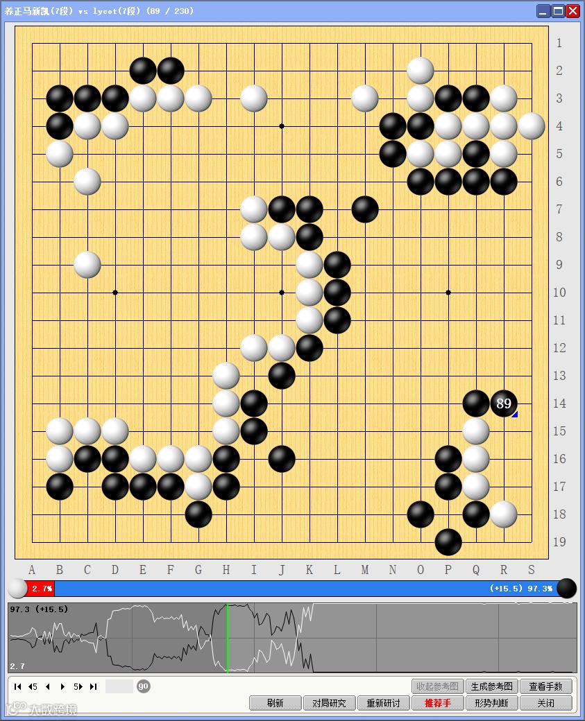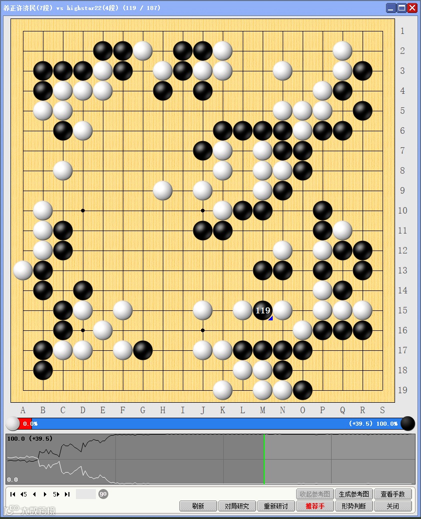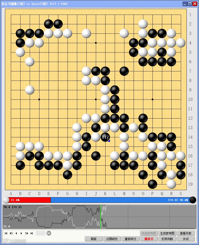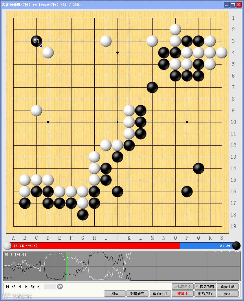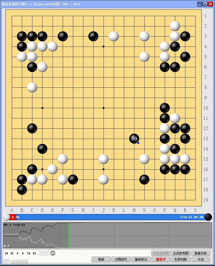 本局体现了黑方朴星峻小棋手极为深厚的功力。棋局只进行了59手,胜率图已经显示黑方胜率高达99.3%。然而棋盘上并未爆发战斗,也没有明显的失误。