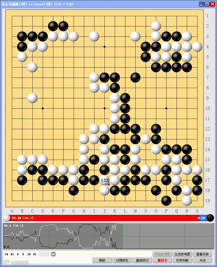 然而,黑117和正解图的差别就在于无法抵挡白棋的入侵。下至白132,凭借顽强的意志,白棋成功入侵了下方黑棋的地盘,黑方实地损失惨重。棋局的形势就此发生逆转。