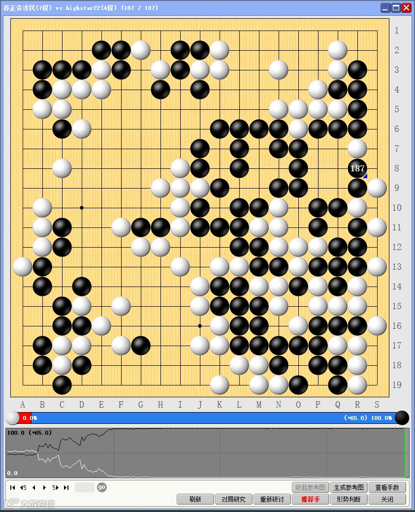 行至黑187,由于棋局差距过大,执白的许济民甚至提前申请了点目,本局以黑方大胜告终。