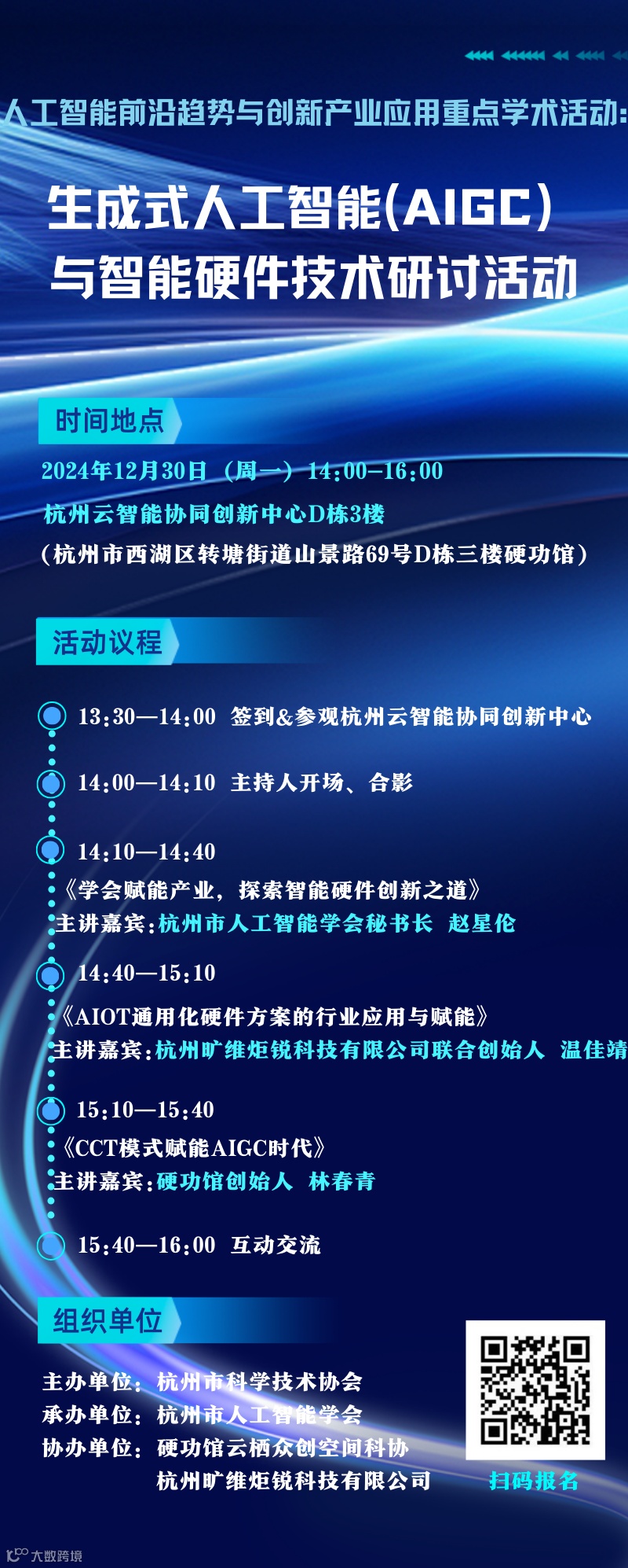 杭州市人工智能学会成立于2012年,现有成员400多名,涵盖在杭人工智能高等学校教师及杭州市人工智能强优企业的主要负责人。学会通过组织各类活动、搭建合作平台等方式,促进了学术界与产业界的深度融合,推动了人工智能技术的创新和应用。未来,杭州市人工智能学会将继续秉承“开放、合作、创新、发展”的理念,加强学术交流与合作,推动人工智能技术的创新和应用,为杭州市乃至全国的人工智能产业发展做出更大的贡献。