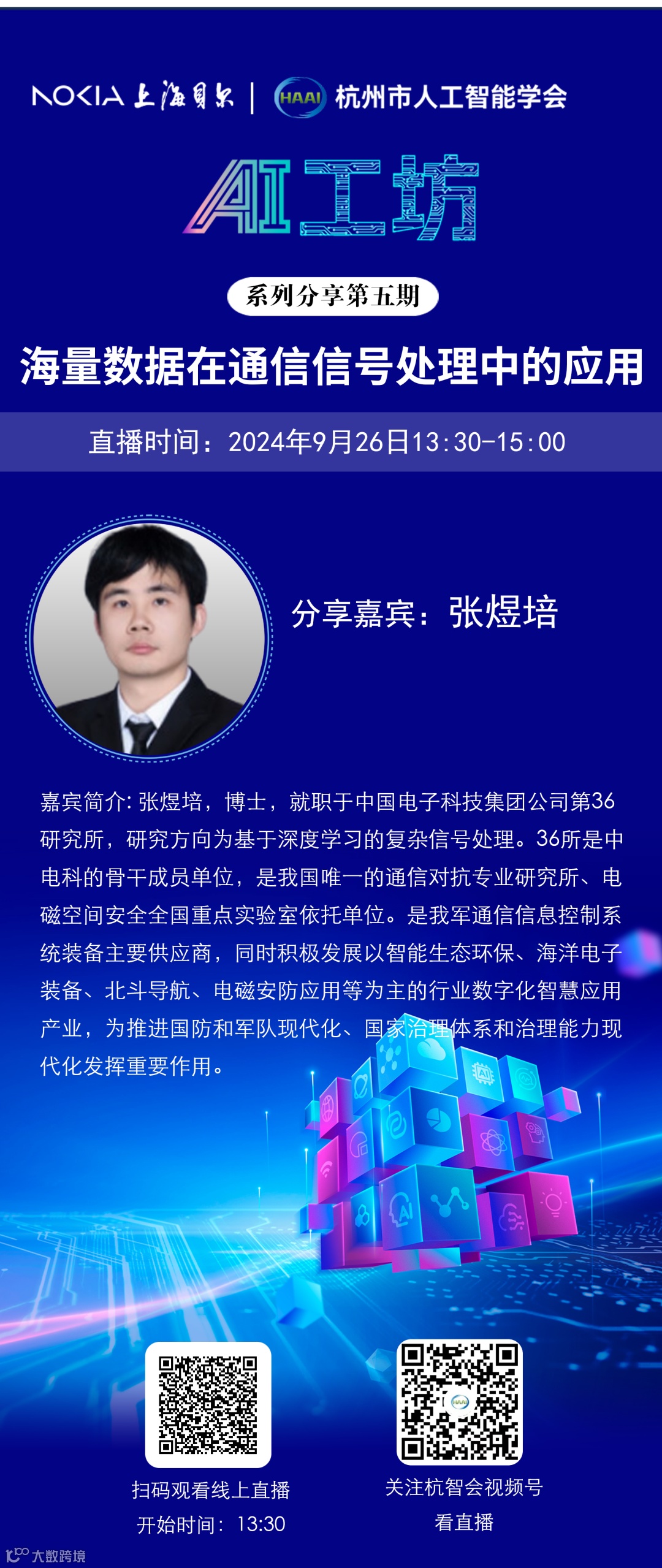 【活动预告】AI工坊第五讲:海量数据在通信信号处理中的应用 杭州市人工智能学会