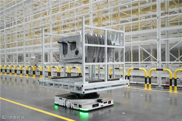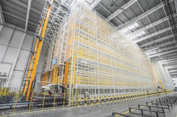 该仓库有7层楼高、约6.5个篮球场大,通过与生产系统的智能对接,可完成零件自动出库及AGV自动配送,实现从冲压线末到焊装车间100%自动化无人物流。