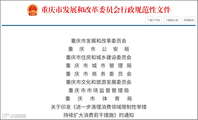 11月7日,重庆市发展改革委、市商务委、市市场监管局等8部门联合印发《进一步清理消费领域限制性举措持续扩大消费若干措施》。针对促进住房消费健康发展方面提出2点举措。