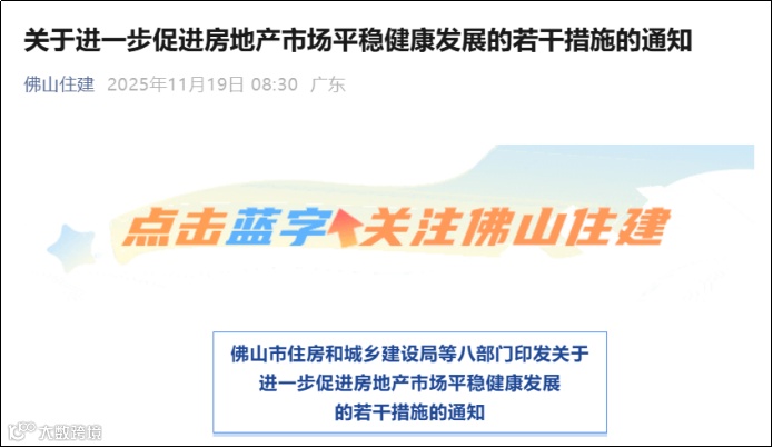 11月19日,佛山市住房和城乡建设局等八部门印发《关于进一步促进房地产市场平稳健康发展的若干措施的通知》进一步促进房地产市场平稳健康发展,自印发之日起施行。