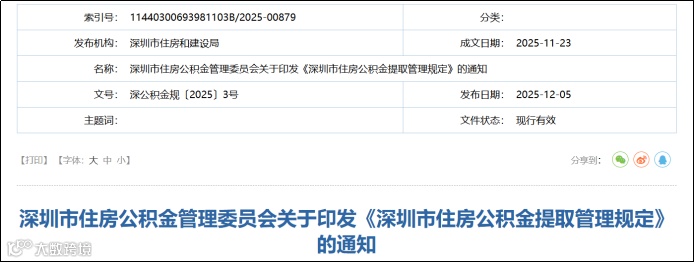 12月5日,深圳市住房公积金管理委员会发布新版《深圳市住房公积金提取管理规定》,提取新规将于2025年12月15日起施行。