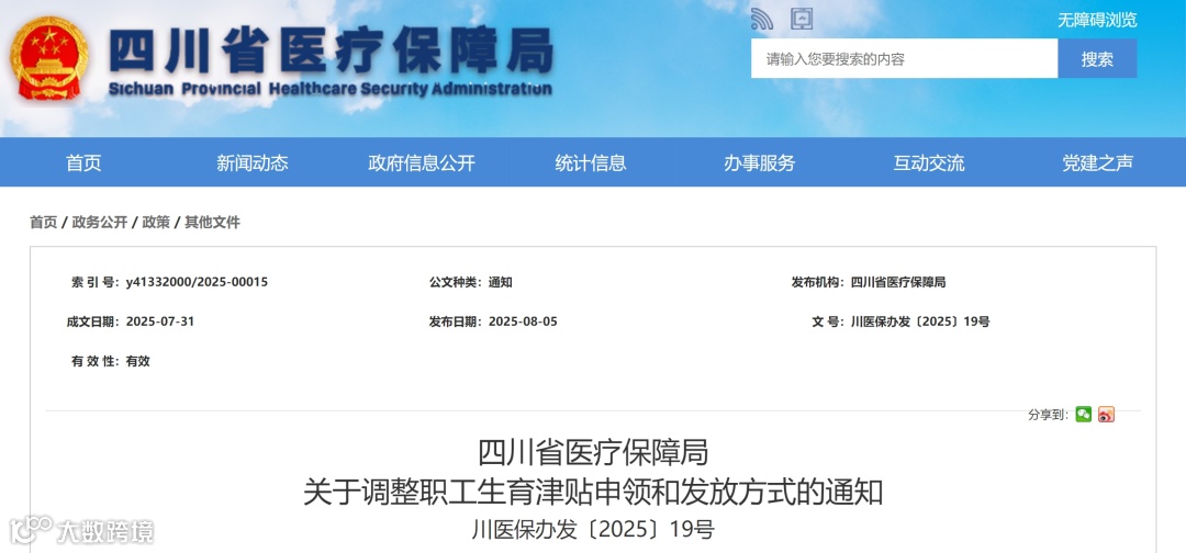 浙江省医疗保障局印发《关于优化生育津贴发放方式的通知》,2025年7月1日起施行。