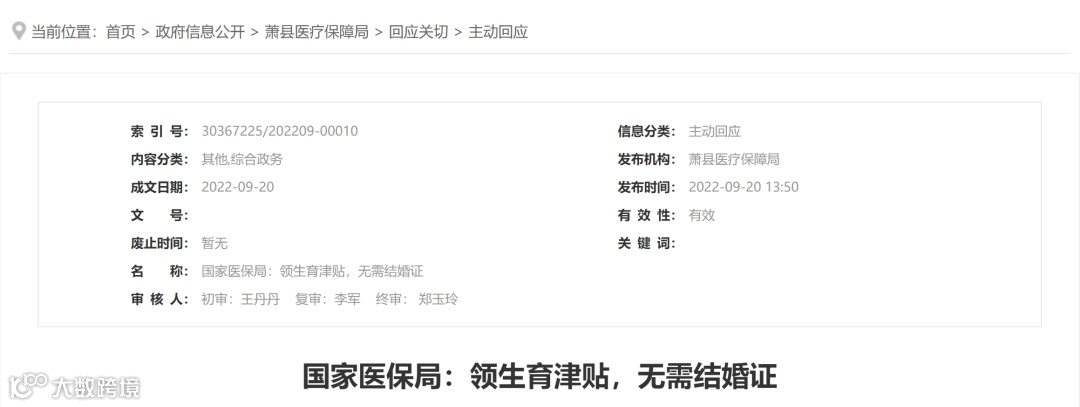 生育津贴方面,国家医保局曾明确表示,社会保险法遵循权利和义务对等,只要履行了生育保险的缴费责任,国家层面在待遇享受方面是没有门槛的,而且在经办服务清单上,关于享受生育保险生育津贴所需提供的相关材料也不需要“结婚证”等材料。