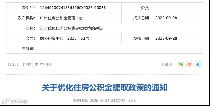 9月28日,广州住房公积金管理中心等部门联合发布《关于优化住房公积金提取政策的通知》,通知自印发之日起施行。