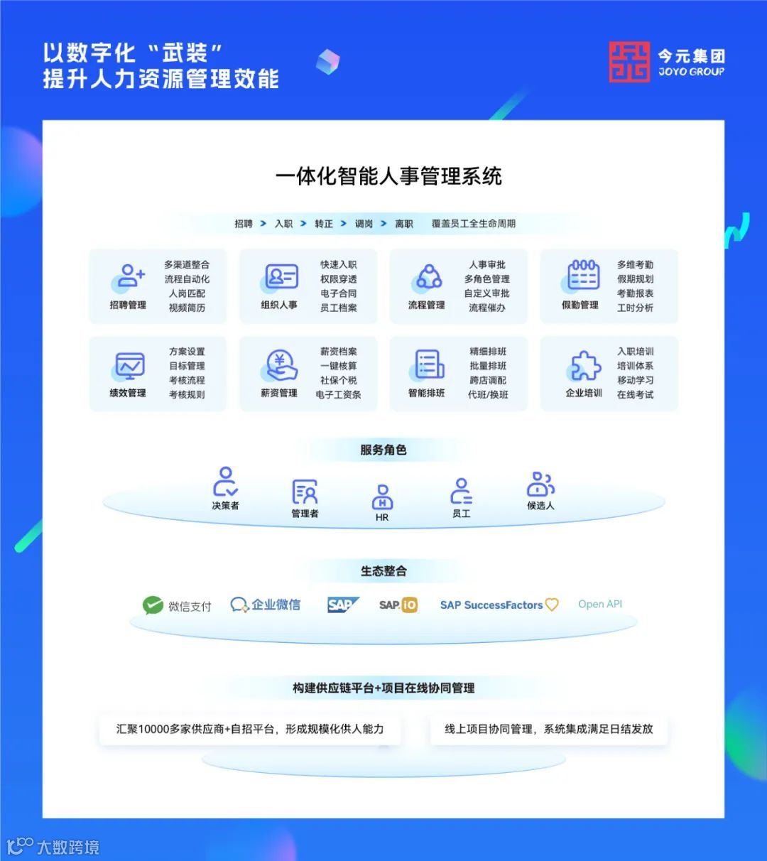 在技术创新方面,今元集团始终走在行业前列。面对全球劳动力市场的快速发展和变革,今元集团将技术创新作为企业发展的核心驱动力,打造“技术+服务”双轮驱动模式。自主研发推出生成式AI+HR系列产品,包括智能招聘管理系统、智能员工管理系统、AI数字员工生产力工具等,从招聘到离职打造贯穿员工全生命周期的数字化闭环管理,全方位赋能企业高效增长,持续以创新引擎推动人力资源行业向数智化演进。