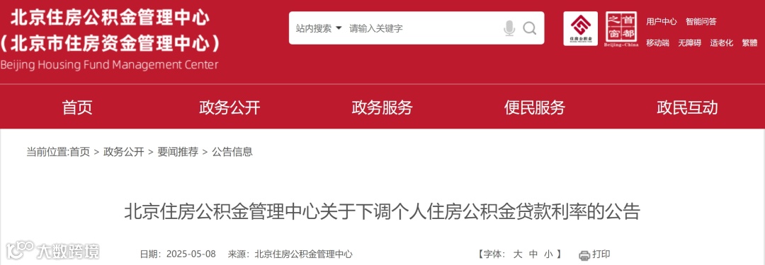 5月8日,北京住房公积金管理中心发布关于下调个人住房公积金贷款利率的公告: