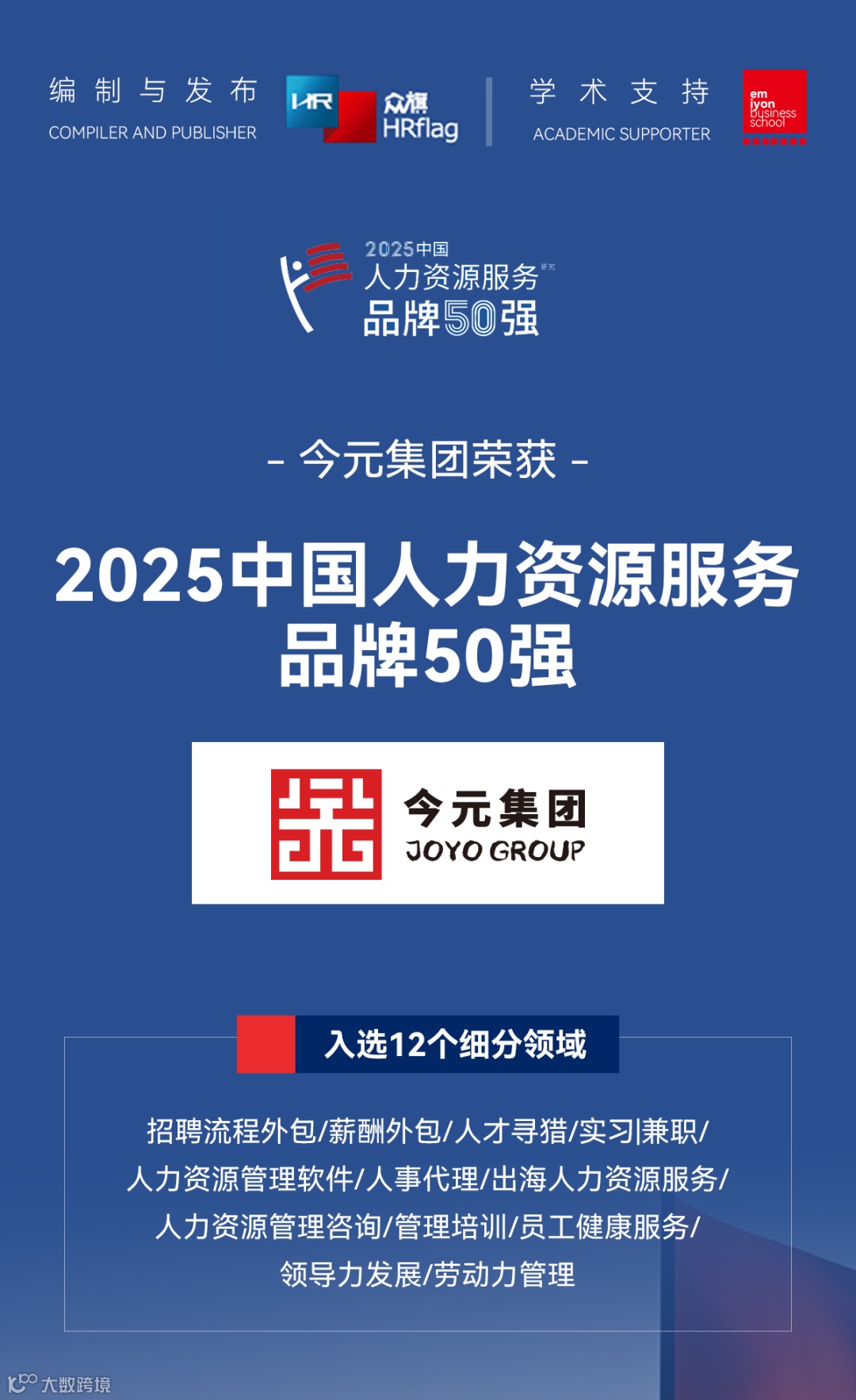 1.今元集团荣登「HRflag 2025中国人力资源服务品牌50强」