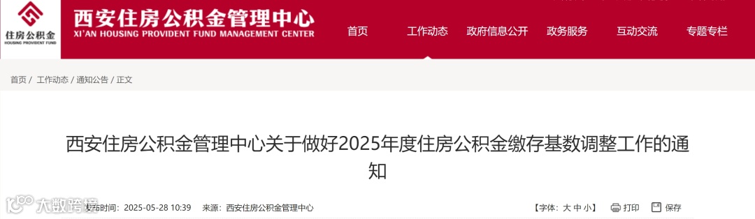 5月28日,西安住房公积金管理中心发布《关于做好2025年度住房公积金缴存基数调整工作的通知》,公布了本年度缴存基数调整时间及缴存基数核算方式。
