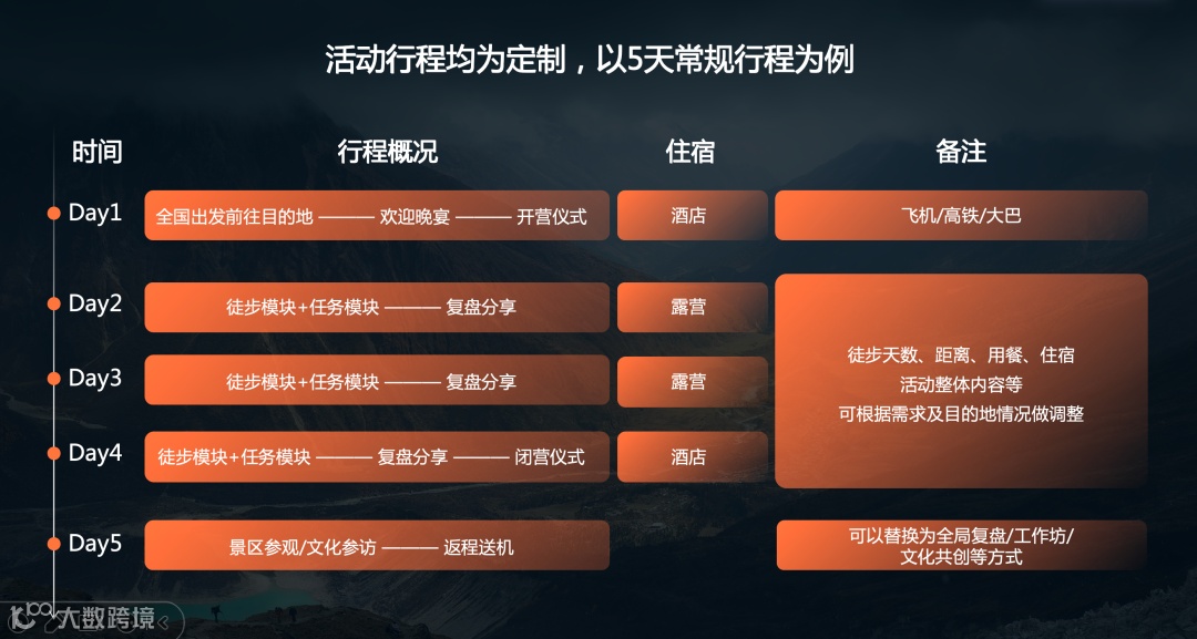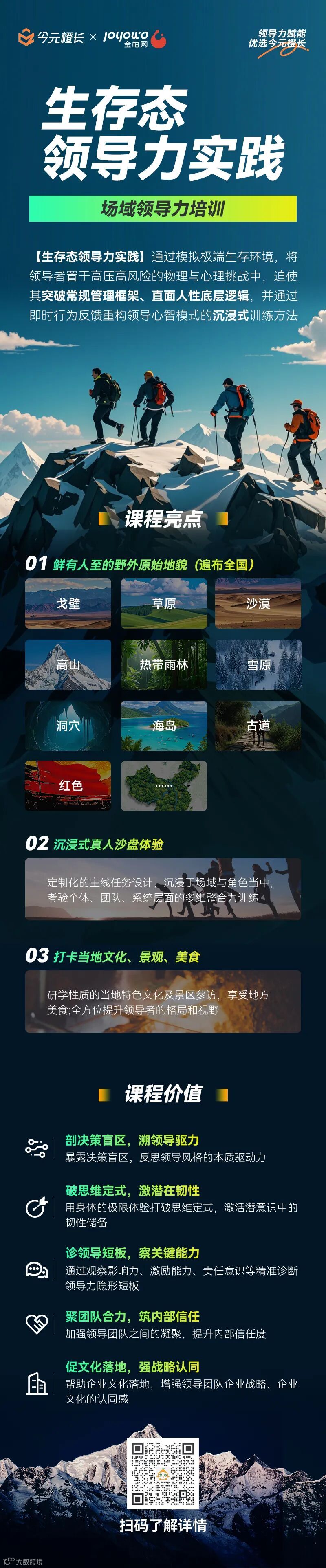 我们用脚步丈量世界,在星轨下重构认知边界;探索天地之辽阔,在罡风中淬炼决策胆魄。今元橙长以天地为幕布,以生存为考题,让领导力在极限中迸发最本真的光芒。在这场心灵与智慧的旅程中,今元橙长期待与远见者同行,凝聚团队的智慧与力量,在极限处共同战胜每一个挑战。