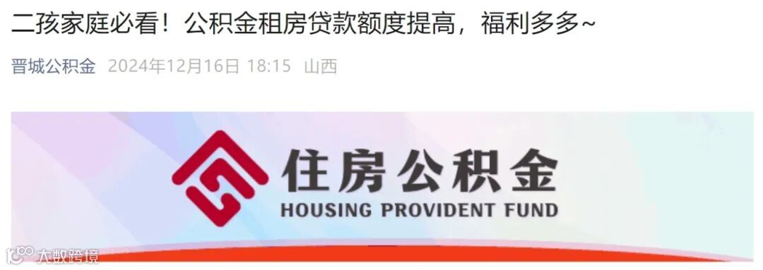 12月16日,公众号“晋城公积金”发布二孩及以上多子女家庭住房新政,不仅租房提取额度上调,而且贷款额度也有所提高。