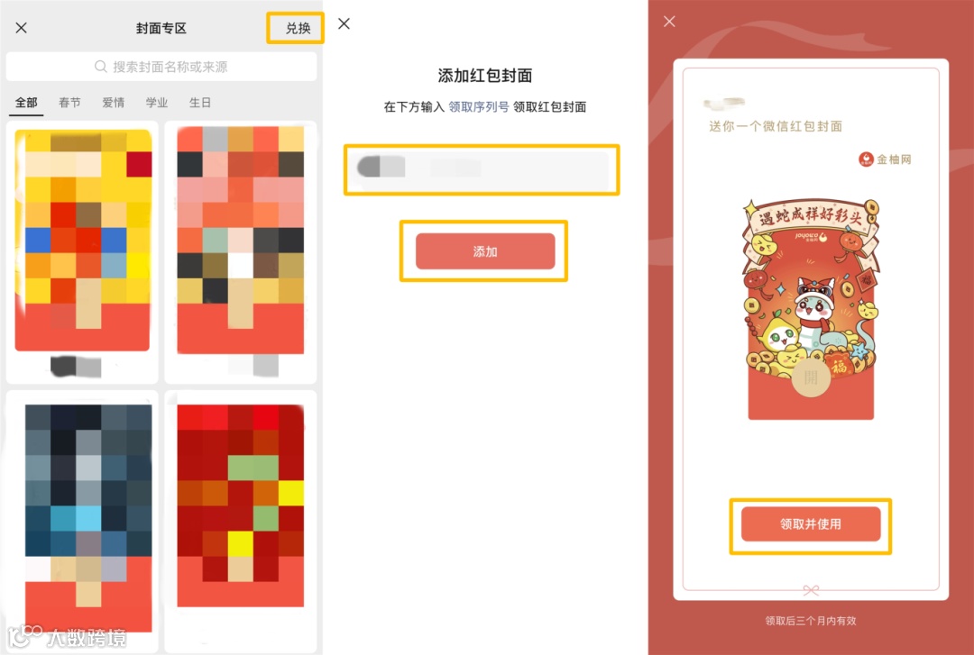 进入我的红包封面,点击右上角【领封面】