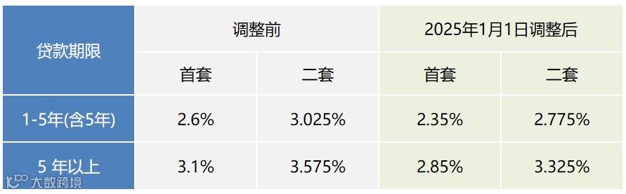 调整后,5年以下(含5年)和5年以上首套个人住房公积金贷款利率分别为2.35%和2.85%,5年以下(含5年)和5年以上第二套个人住房公积金贷款利率分别为2.775%和3.325%。于2025年1月1日起统一批量下调,无需借款人申请。