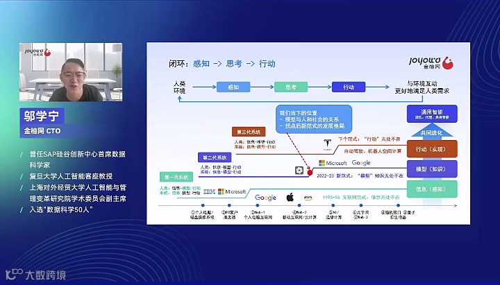 金柚网CTO邬学宁以《AGI时代HR行业数字化》为主题,解析人工智能的发展阶段及趋势,探讨人工智能大模型对人力资源行业的影响,强调了AI技术在颠覆工作岗位、升级员工工作模式以及重塑企业组织形态