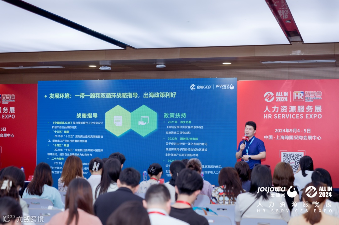 在汽车与零部件行业论坛上,金柚网海外业务全球总部「金柚GEO」总经理肖键以“打破国界 如何让全球步伐走得更稳健”为主题,详细介绍中国出海企业整体概况、中企海外用工特点和方式,深入分享全球HR解决方案以及企业出海的成功案例和最佳实践,为出海浪潮下的企业提供更全面的用工参考。