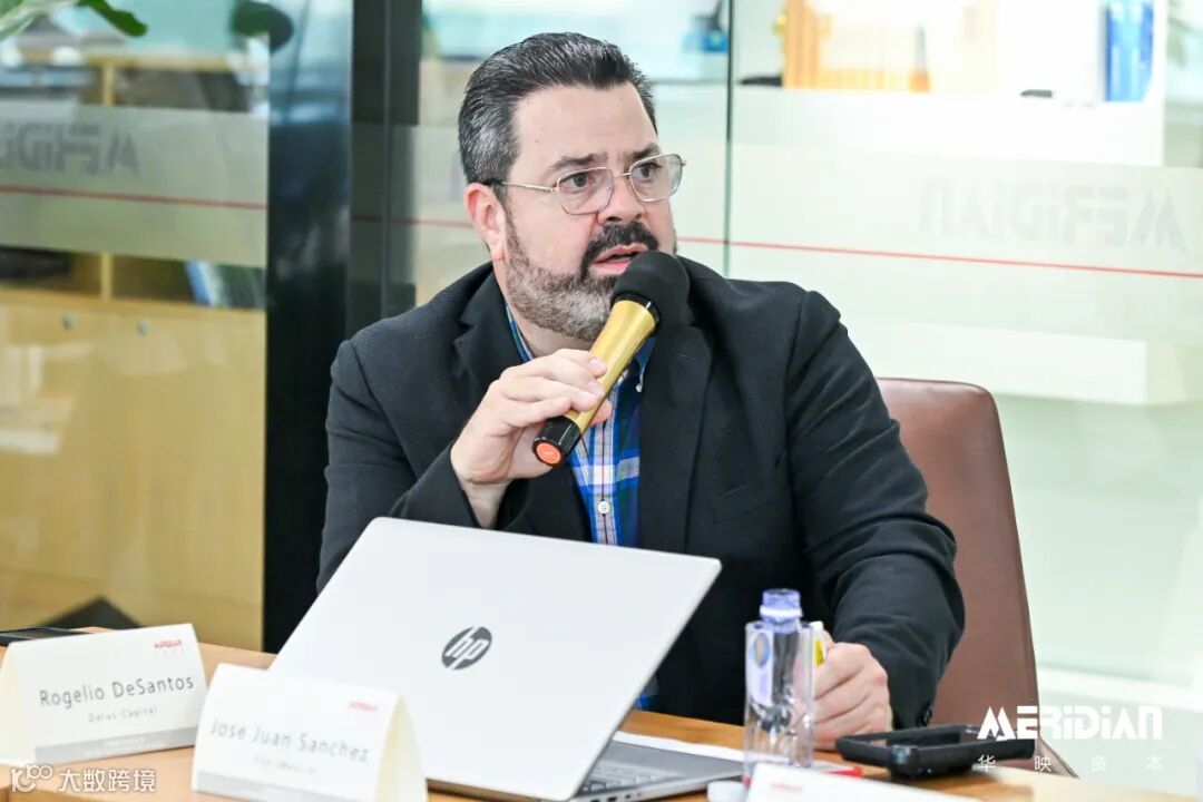 主题分享环节,华映资本管理合伙人章高男介绍了华映资本在智能制造领域的生态布局和出海计划。F50创始人David Cao从北美主动脉谈起,特别提出“墨西哥制造概念股”的资本化新路径。墨西哥本土风险投资公司Dalus Capital管理合伙人Rogelio DeSantos作为拉美地区最早做风险投资的投资人之一,分享拉美创业和投资的蓬勃,以及墨西哥制造业和北美市场联动的新机遇。F50墨西哥管理合伙人Jose Juan Sanchez作为深谙墨西哥制造运营的资深人士,特别提及AI等新技术对智能制造在提升设计和运营效率上的显著作用。作为几十年活跃在美国旧金山和中国两地的投资人,沃元创投创始合伙人刘金波深刻感受到当下美国资本对中国出海企业的兴趣度增高。MirraViz联合创始人兼CEO袁野也分享了从墨西哥最大工业城市蒙特雷(Monterrey)到北美市场进出关和运输的便利和高效。