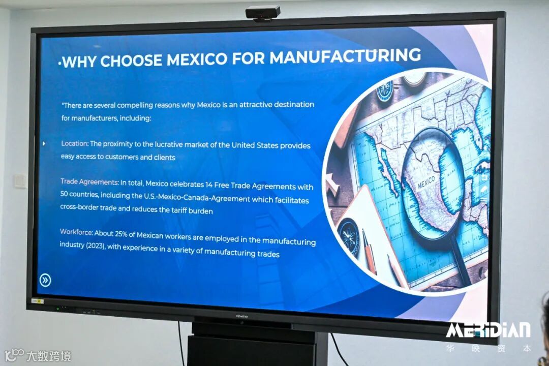 近日,由华映资本和全球资本平台F50共同组织的“北美制造,智映未来”美-墨-中高端智造投资人交流会在上海举行。来自美国、墨西哥和中国三国的投资人、创业者、出海服务机构和合作伙伴一起沟通中国公司出海北美-墨西哥市场的机遇和挑战。