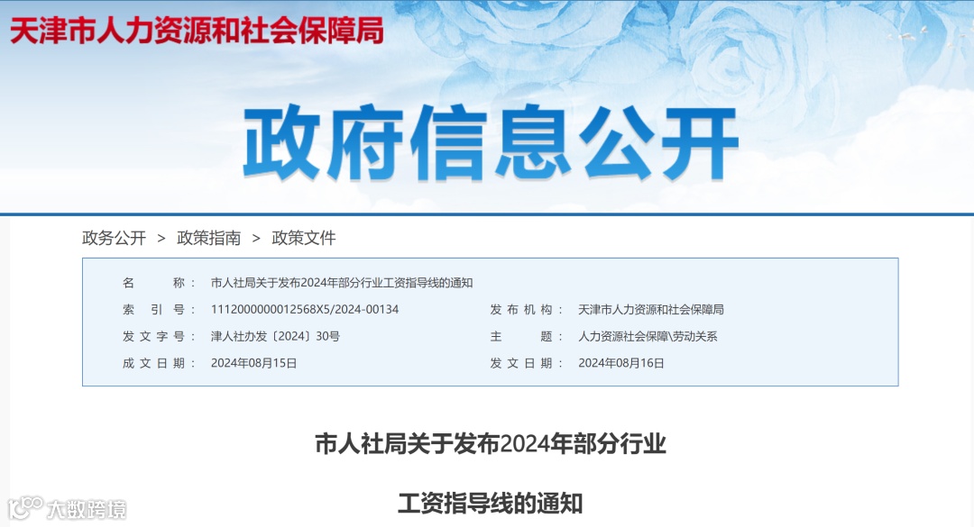 天津市人社局此前发布《关于2024年部分行业工资指导线的通知》,该通知规定行业工资指导线为基准线。
