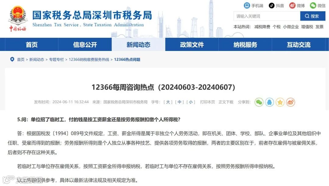 近日,国家税务总局深圳市税务局回复:根据国税发〔1994〕089号文件规定,工资、薪金所得是属于非独立个人劳务活动,即在机关、团体、学校、部队、企事业单位及其他组织中任职、受雇而得到的报酬;劳务报酬所得则是个人独立从事各种技艺、提供各项劳务取得的报酬,两者的主要区别在于,前者存在雇佣与被雇佣关系,后者则不存在这种关系。