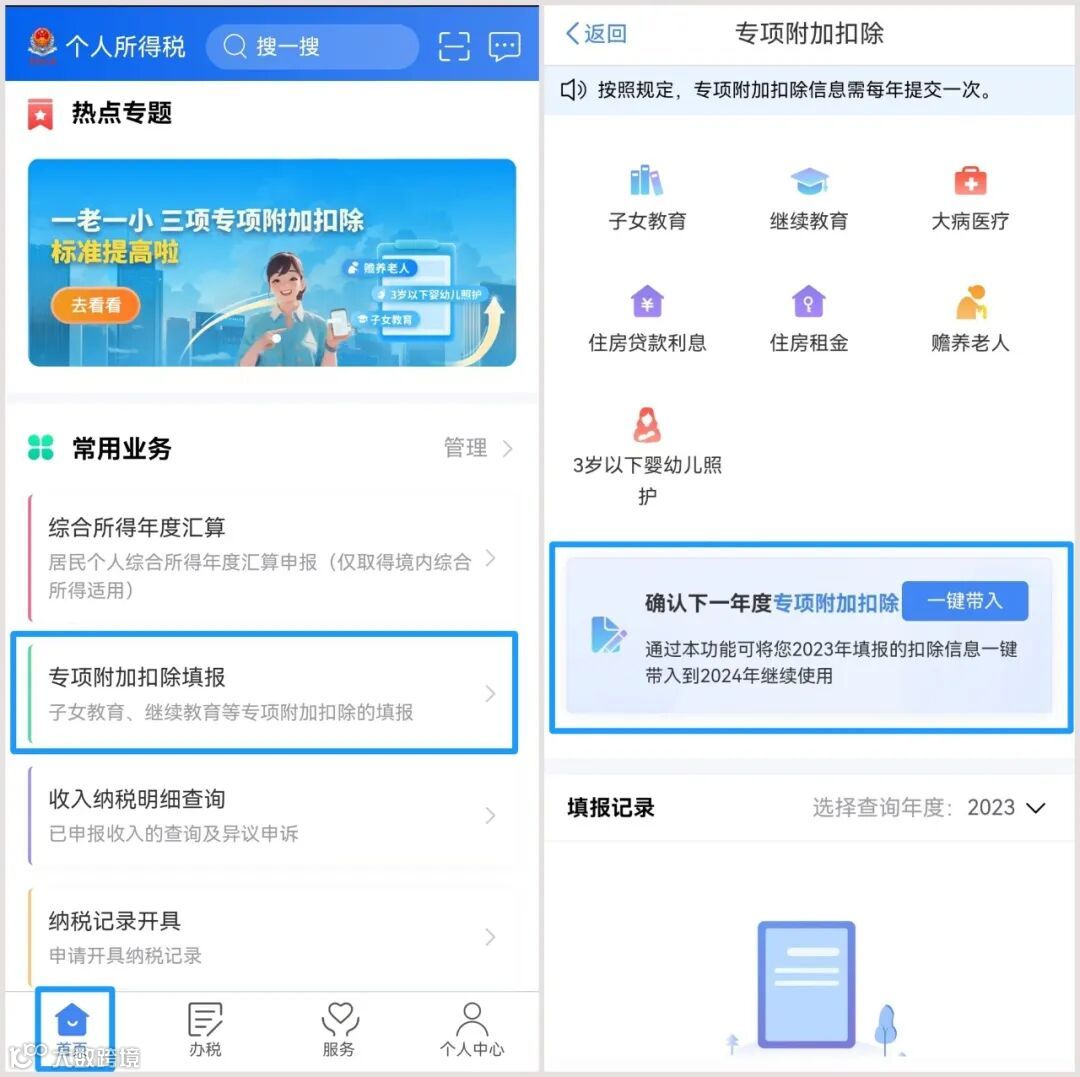 A:纳税人已经填报享受2023年度3岁以下婴幼儿照护、子女教育、赡养老人专项附加扣除的,无需重新填报,信息系统将自动适用提高后的专项附加扣除标准。但纳税人对约定分摊或者指定分摊赡养老人专项附加扣除额度有调整的,可以在手机个人所得税APP或通过扣缴义务人填报新的分摊额度。