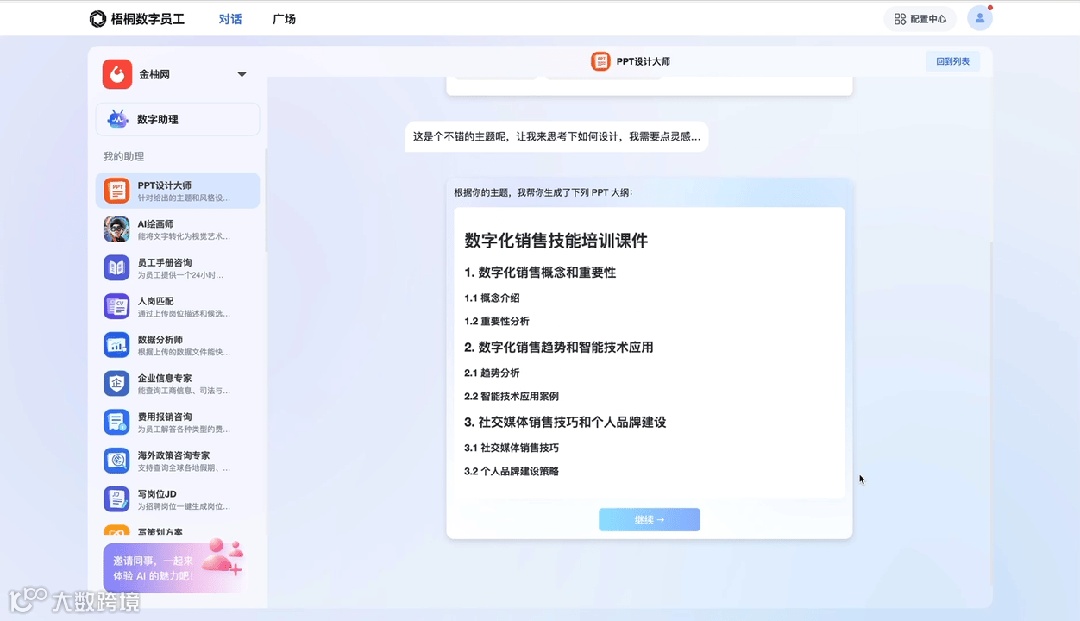 过去,许多培训师常常为课件制作而头疼,为了达到最佳的课堂呈现效果,需要花费大量时间去准备课件内容、搜罗精美的模版、进行繁琐的排版设计等等,整个过程下来十分费时费力。现在,有了梧桐数字员工的【PPT设计大师】,培训课件3分钟就可生成!