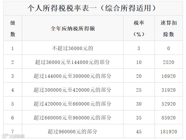 注2:非居民个人取得工资、薪金所得,劳务报酬所得,稿酬所得和特许权使用费所得,依照本表按月换算后计算应纳税额。