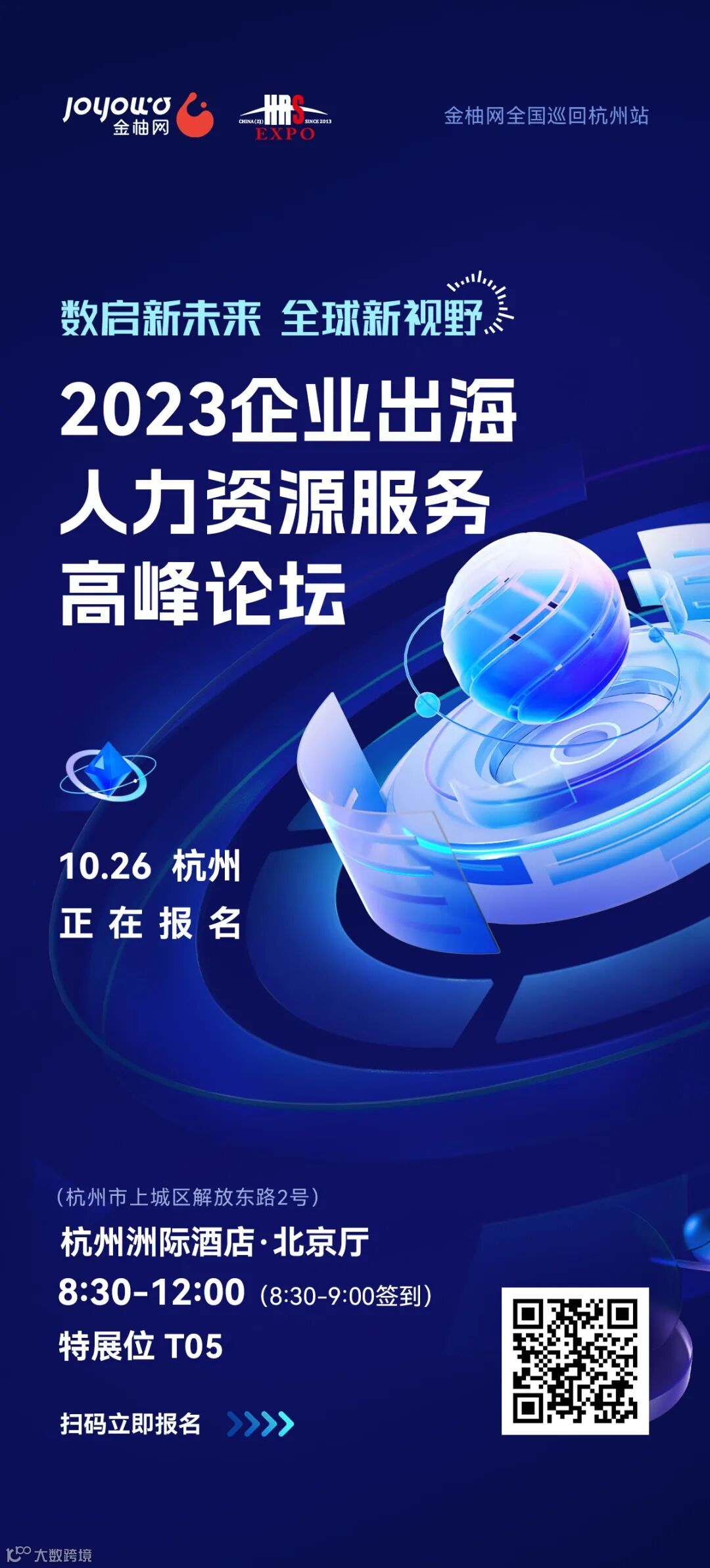 本次人博会期间,由浙江省人力资源服务协会主办、金柚网承办、杭州市创业投资协会支持的“数启新未来,全球新视野——2023企业出海人力资源服务高峰论坛”,不仅是金柚网全国巡回首站,也是今年人博会唯一一个企业出海主题论坛,共话中国机遇,共襄行业盛会,精彩内容不容错过。