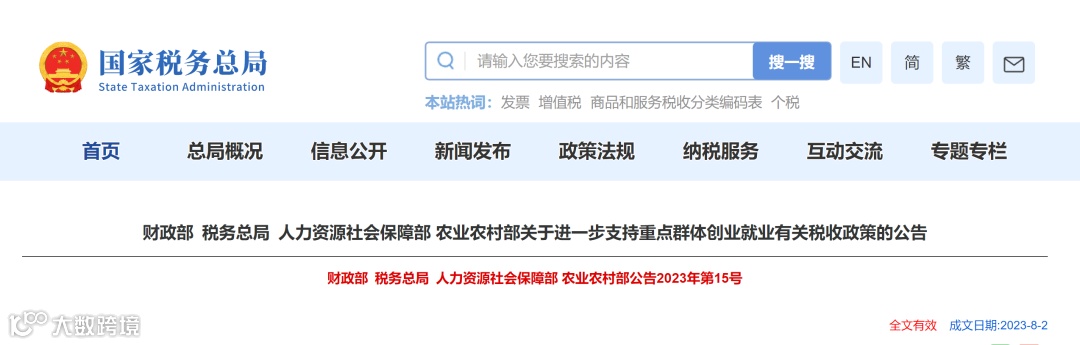 8月2日,财政部、税务总局、人力资源和社会保障部、农业农村部等四部门发布《关于进一步支持重点群体创业就业有关税收政策的公告》,进一步支持重点群体创业就业。