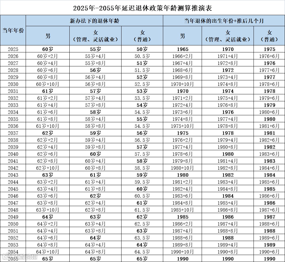 退休年龄推演表(点击查看大图)