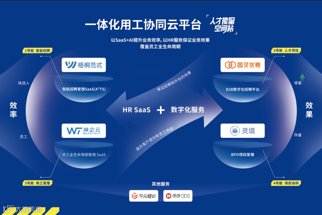 金柚网作为HR SaaS+数字化服务模式的先驱者,通过打造由智能招聘管理SaaS「梧桐范式」、员工全生命周期SaaS「唤企云」、B2B数字化招聘平台「图灵优聘」、BPO项目管理平台「灵境」构成一体化用工协同云平台,提升HR流程效率的同时,也切实保证企业招到人、招对人,满足企业经营发展过程中的用工需求和降本增效的要求。