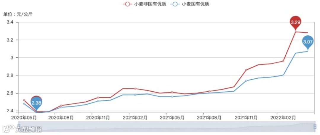 自2020年开始,大众商品价格上涨,其中包括了各类农产品的价格。进入2022年,国际局势风云诡谲,俄罗斯、乌克兰两国作为全球小麦和原油的重要出口国,其国内局势导致小麦和国际原油价格持续上升。