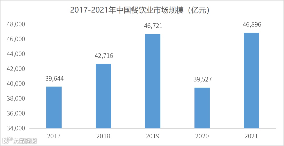 2021年,疫情防控形势总体平稳,餐饮收入规模与2019年基本持平,但是相较整体的经济增速,尚未恢复至疫情前的水平。2022年疫情带来的问题依旧存在,餐饮市场面临较大的下行压力。