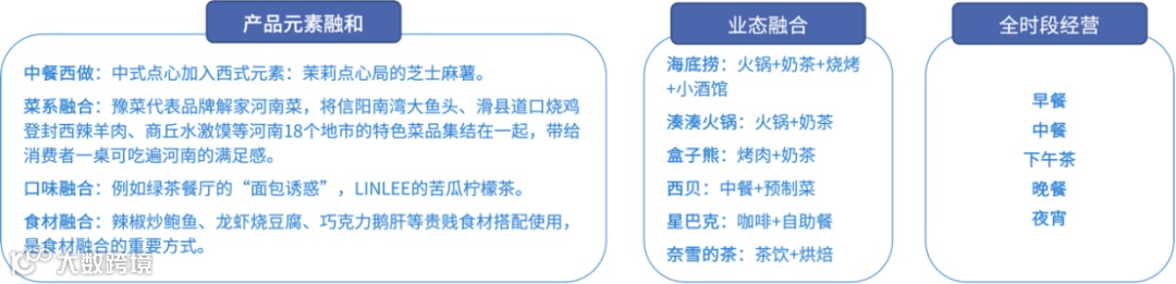 产品元素融合,即中餐西做、菜系融合、口味融合、食材融合等;