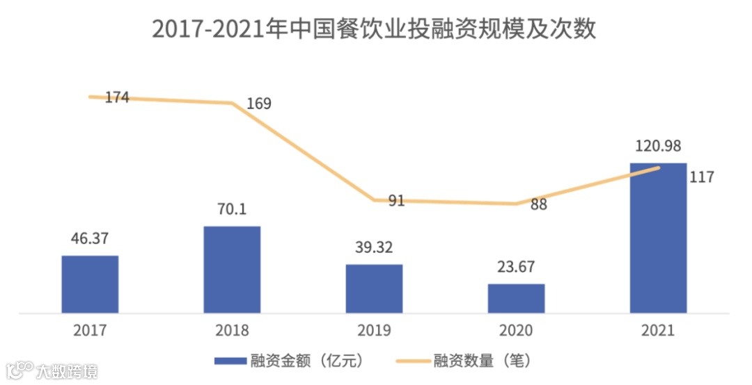 2021年是餐饮企业的资本大年,从投融资数量来看,2017至2018年均在170笔左右,2019年,投融资数量下降至91笔。